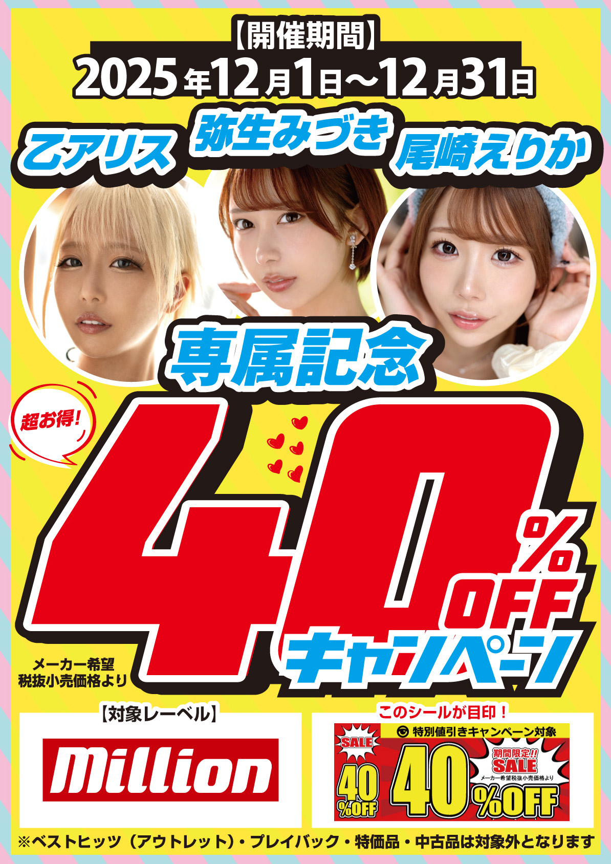 ミリオン/KMP 40%OFFキャンペーンスタート